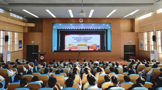 许玉亭以“弘扬伟大抗战精神,为实现强国建设、民族复兴伟业而奋斗”为主题,结合自身参军报国、服务地方、退休后投身红色宣讲的丰富人生经历,深情回顾了中国人民抗日战争那段波澜壮阔、艰苦卓绝的峥嵘岁月,动情讲述了杨靖宇、赵一曼等英烈事迹,深刻阐释了伟大抗战精神的核心内涵,并结合12月13日国家公祭日,强调铭记历史不是为了延续仇恨,而是为了珍爱和平、开创未来。宣讲中,他以自己十余年坚守红色宣讲一线、足迹遍布全国的事迹,激励青年学子要铭记历史、珍爱和平,将个人理想融入国家发展和民族复兴的伟大事业中。