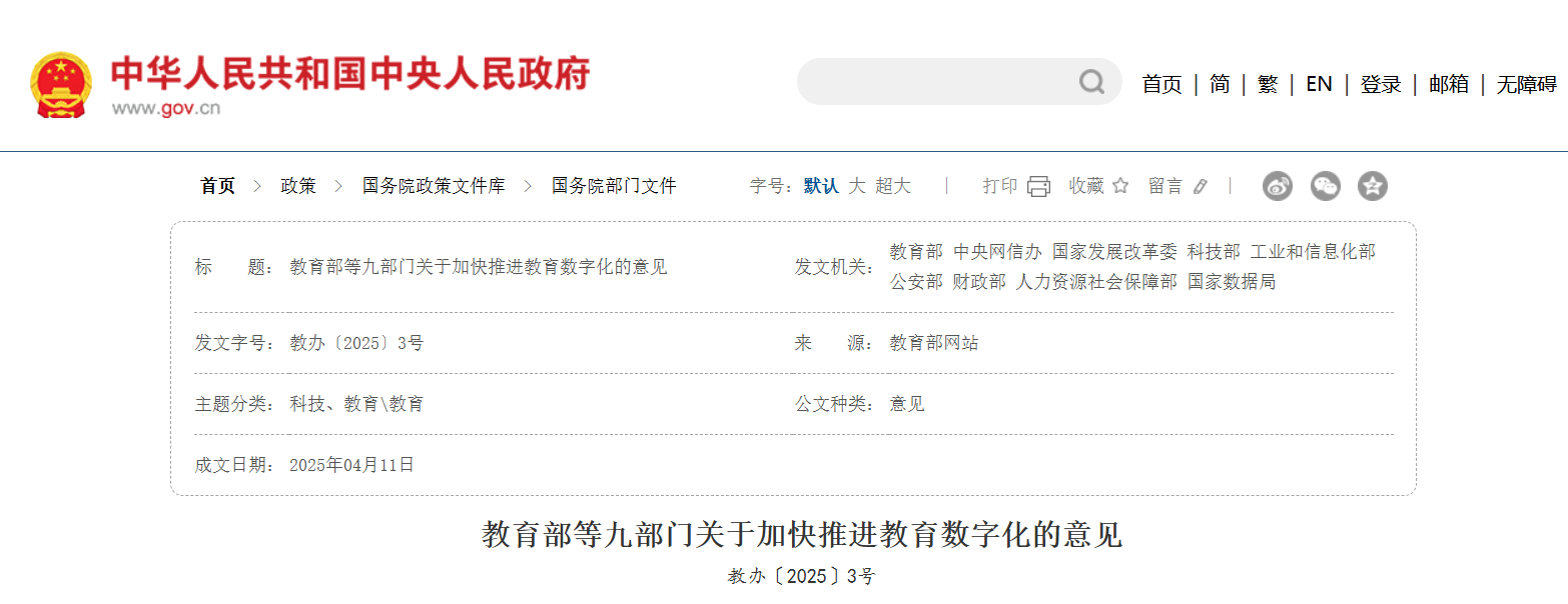 为贯彻落实《教育强国建设规划纲要(2024—2035年)》,以教育数字化为重要突破口,开辟教育发展新赛道和塑造发展新优势,全面支撑教育强国建设,提出如下意见。