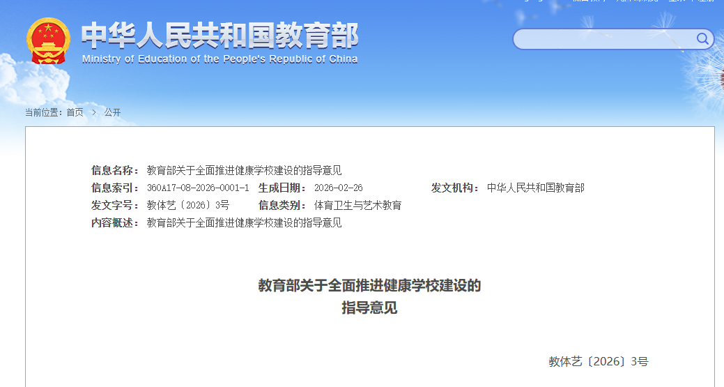 为深入贯彻《教育强国建设规划纲要(2024—2035年)》,深入落实“健康第一”教育理念,全面推进健康学校建设,整体提升青少年学生身心健康水平,支撑教育强国和健康中国建设,提出以下指导意见。