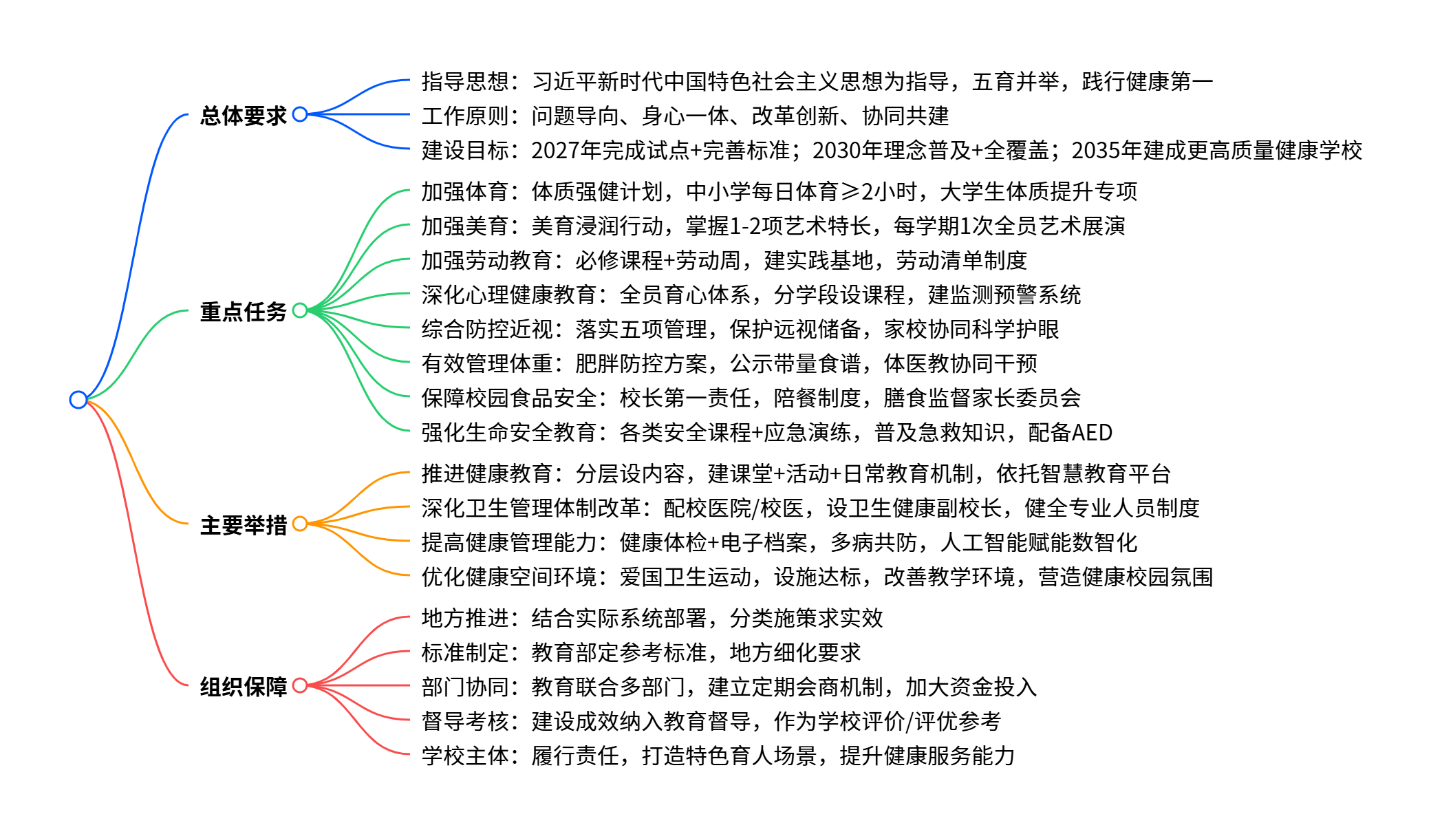 《教育部关于全面推进健康学校建设的指导意见》思维导图(AI生成)