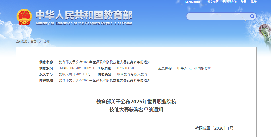 教育部关于公布2025年世界职业院校技能大赛获奖名单的通知