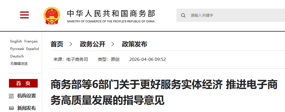 为深入贯彻党中央关于促进实体经济和数字经济深度融合、扩大电子商务制度型开放等重要部署,激发电子商务内生动力、创新潜力、开放活力,助力巩固壮大实体经济根基,更好服务经济社会高质量发展,商务部会同有关部门研究起草了《意见》,并于近日正式印发实施。