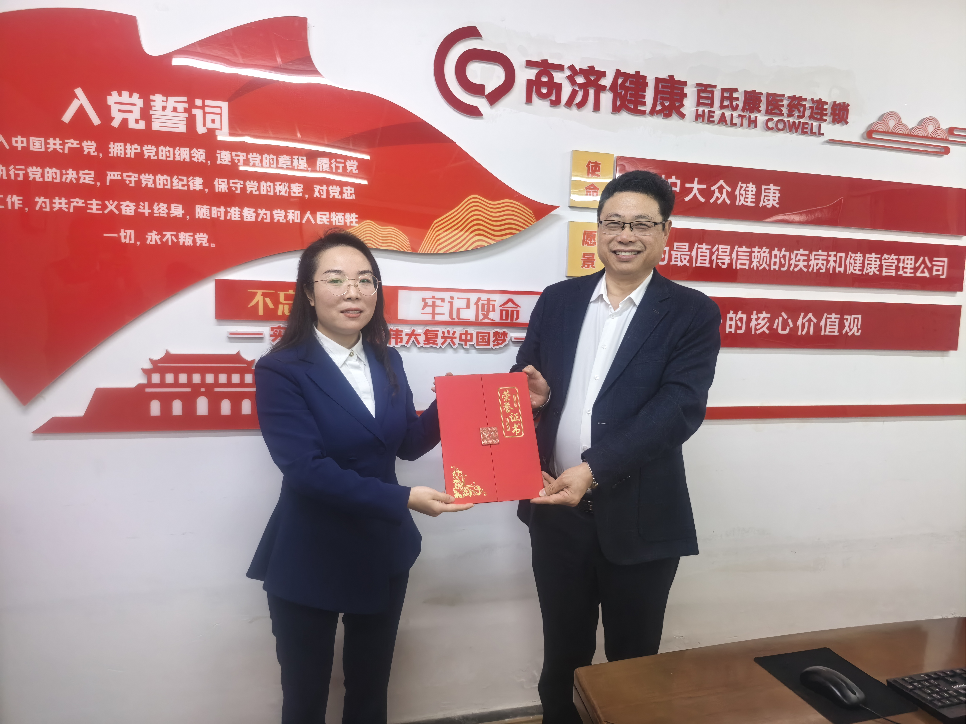 在高济百氏康医药连锁有限公司董事长陈峰、总经理张亚楠等企业领导的陪同下,魏新华一行实地参观了公司中心店,通过现场观摩与讲解,直观感受了医药零售行业在健康服务领域的创新发展态势。