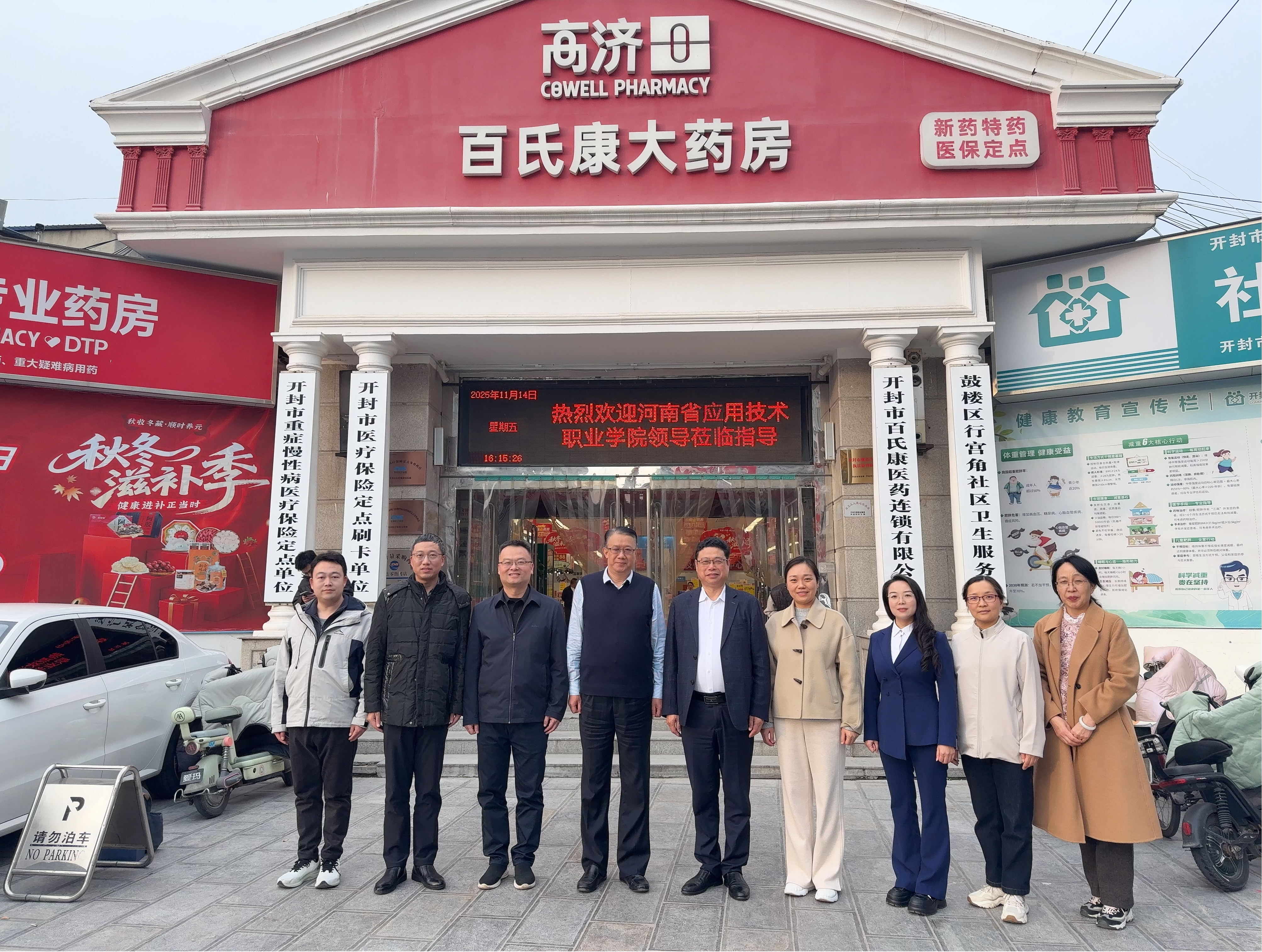 11月14日下午,校党委副书记、开封校区管委会主任魏新华带队赴高济百氏康医药连锁有限公司开展访企拓岗,招生就业与校企合作处、医药健康学院相关负责人陪同走访。